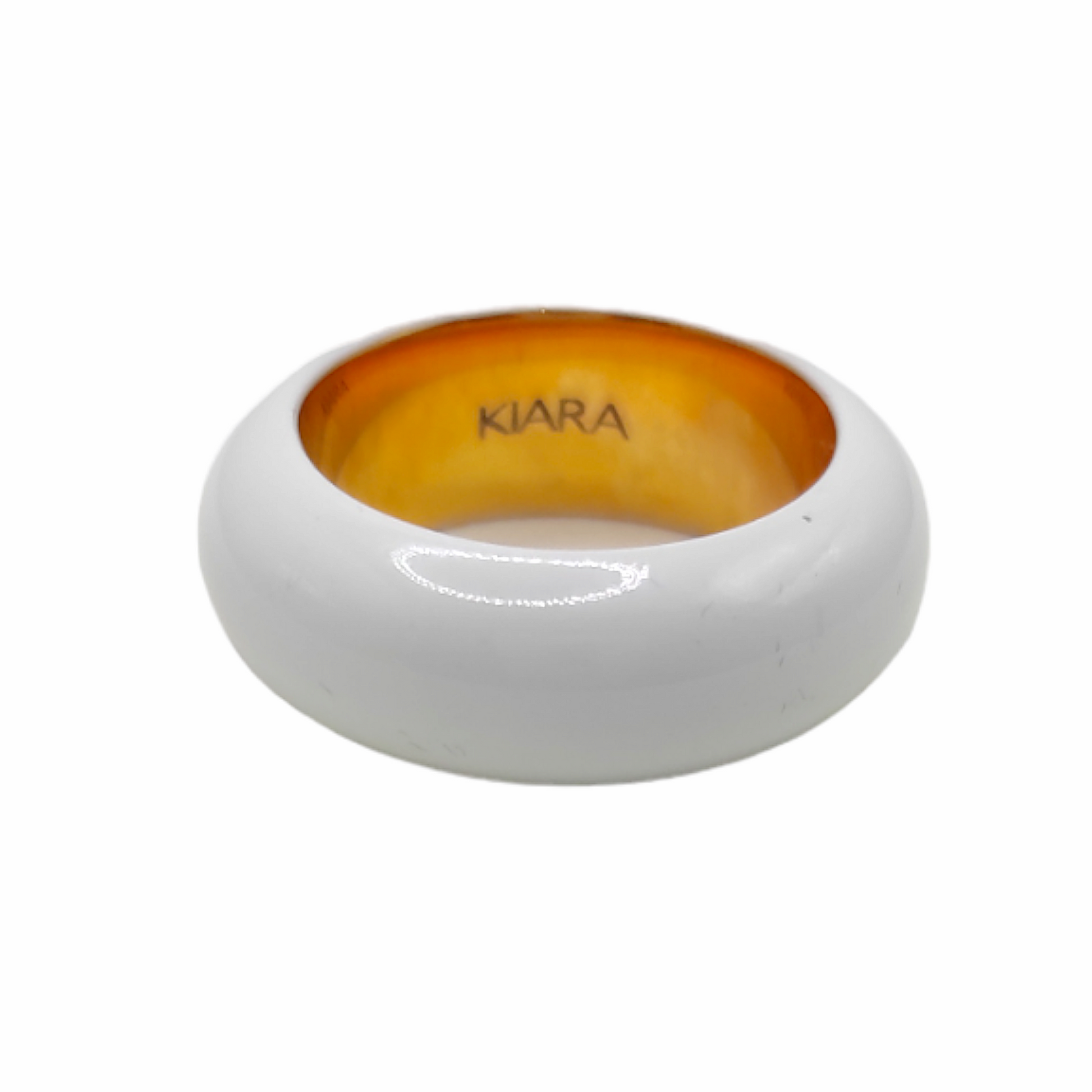 Anello da donna dalla superficie bombata realizzato in porcellana con rivestimento interno in ottone placcato oro giallo.