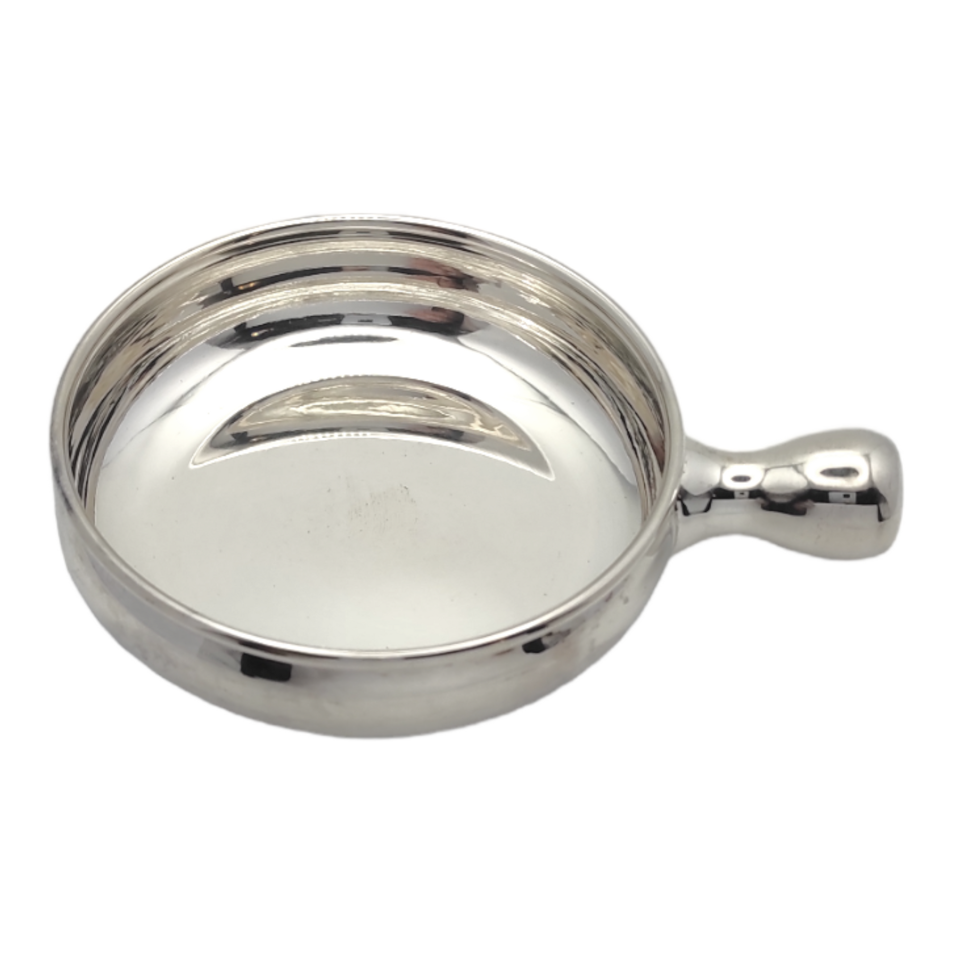 Salsiera con manico realizzata a mano in argento 800 stile inglese dal diametro di 8 cm, peso totale prodotto 57 gr