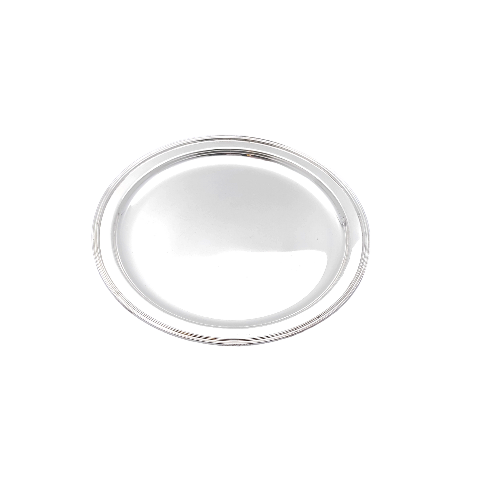 Piatto lavorato a mano in stile Inglese realizzato in argento 800 dalle dimensioni di 19 cm diametro, 1 cm di altezza per un peso totale di 176 gr.