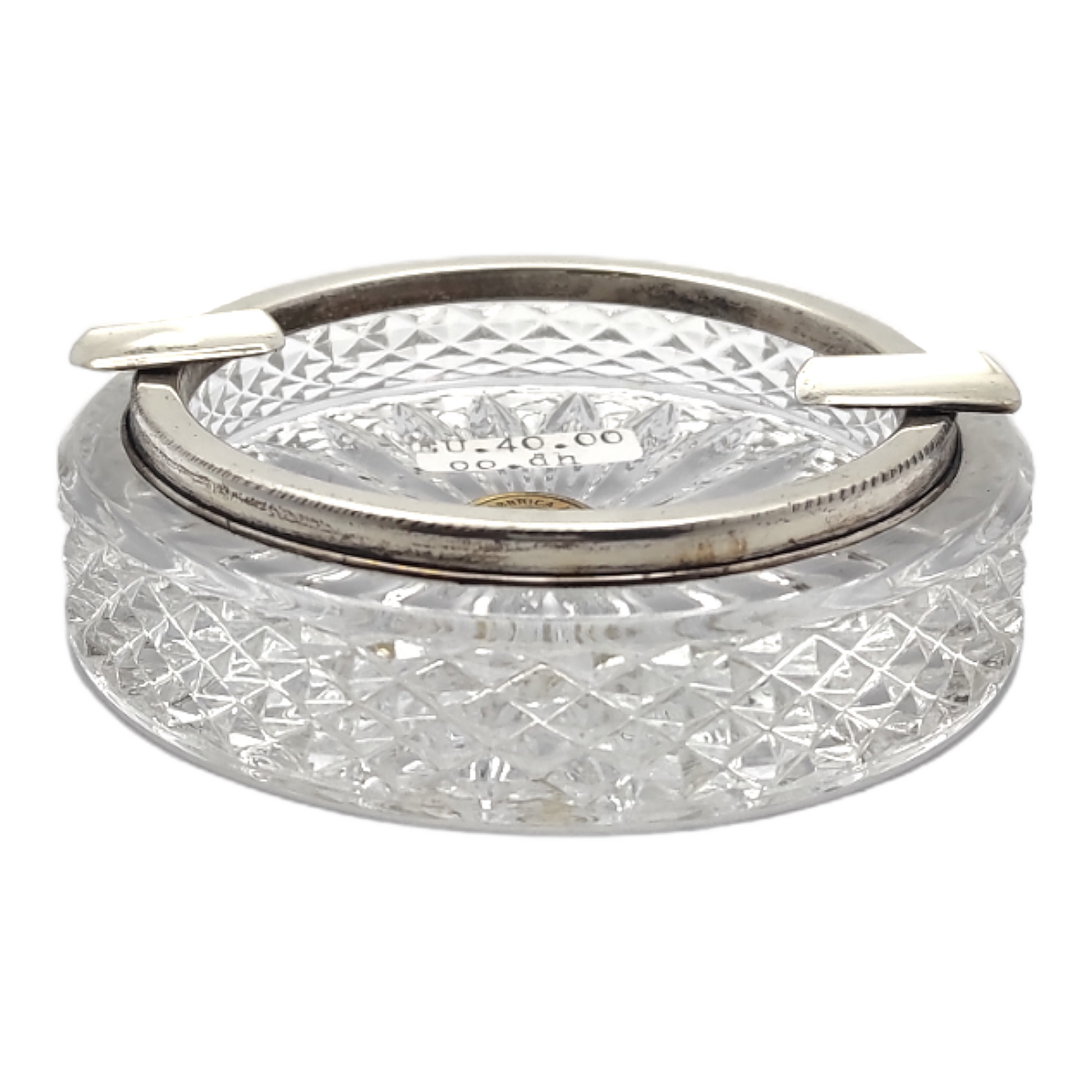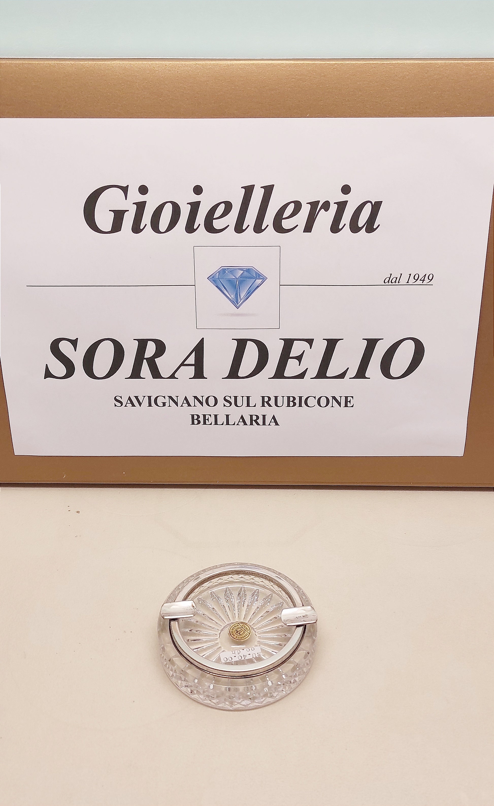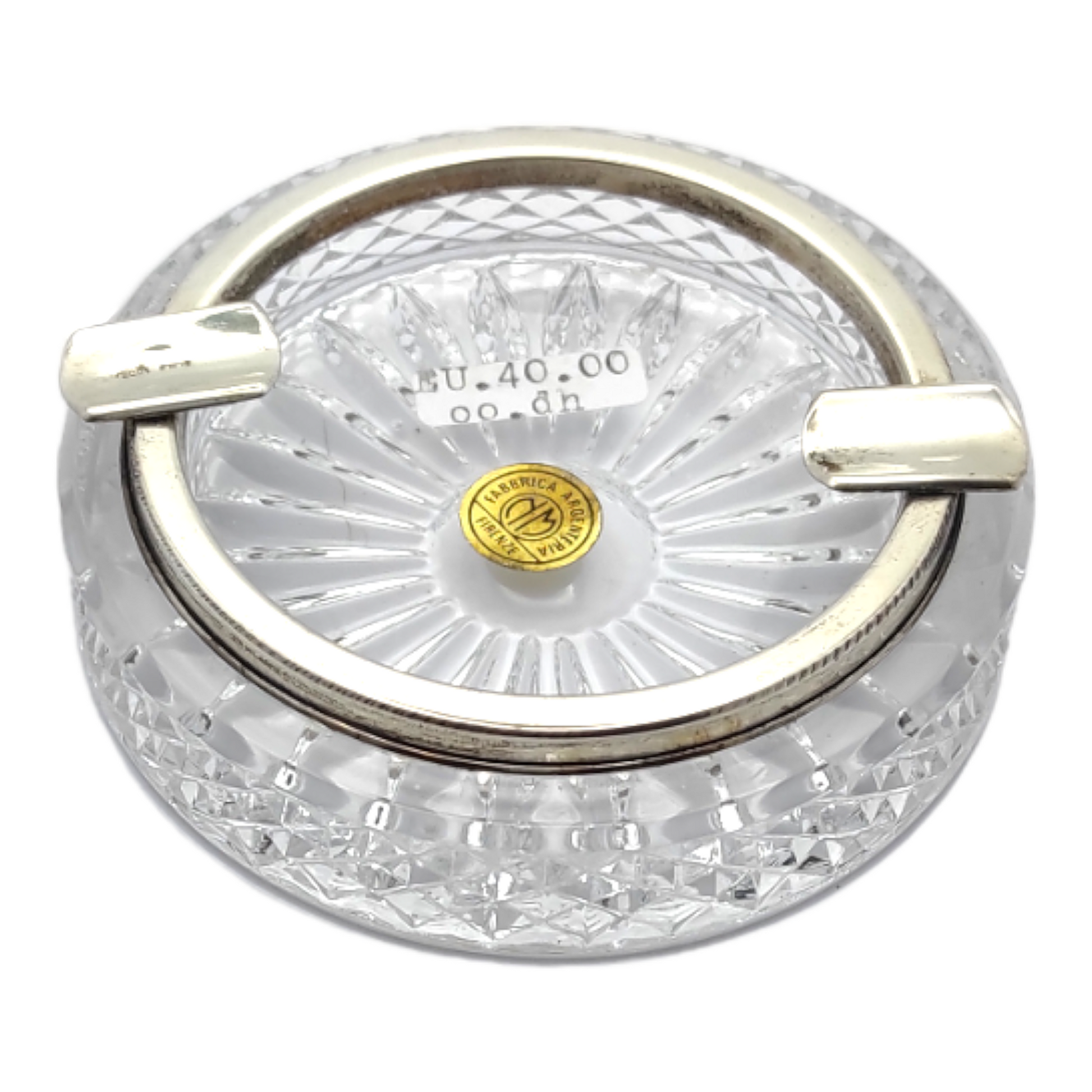 Elegante posacenere in cristallo e argento 800 made in Italy Firenze. Il prodotto ha dimensioni di 9cm diametro, altezza 2,5 cm