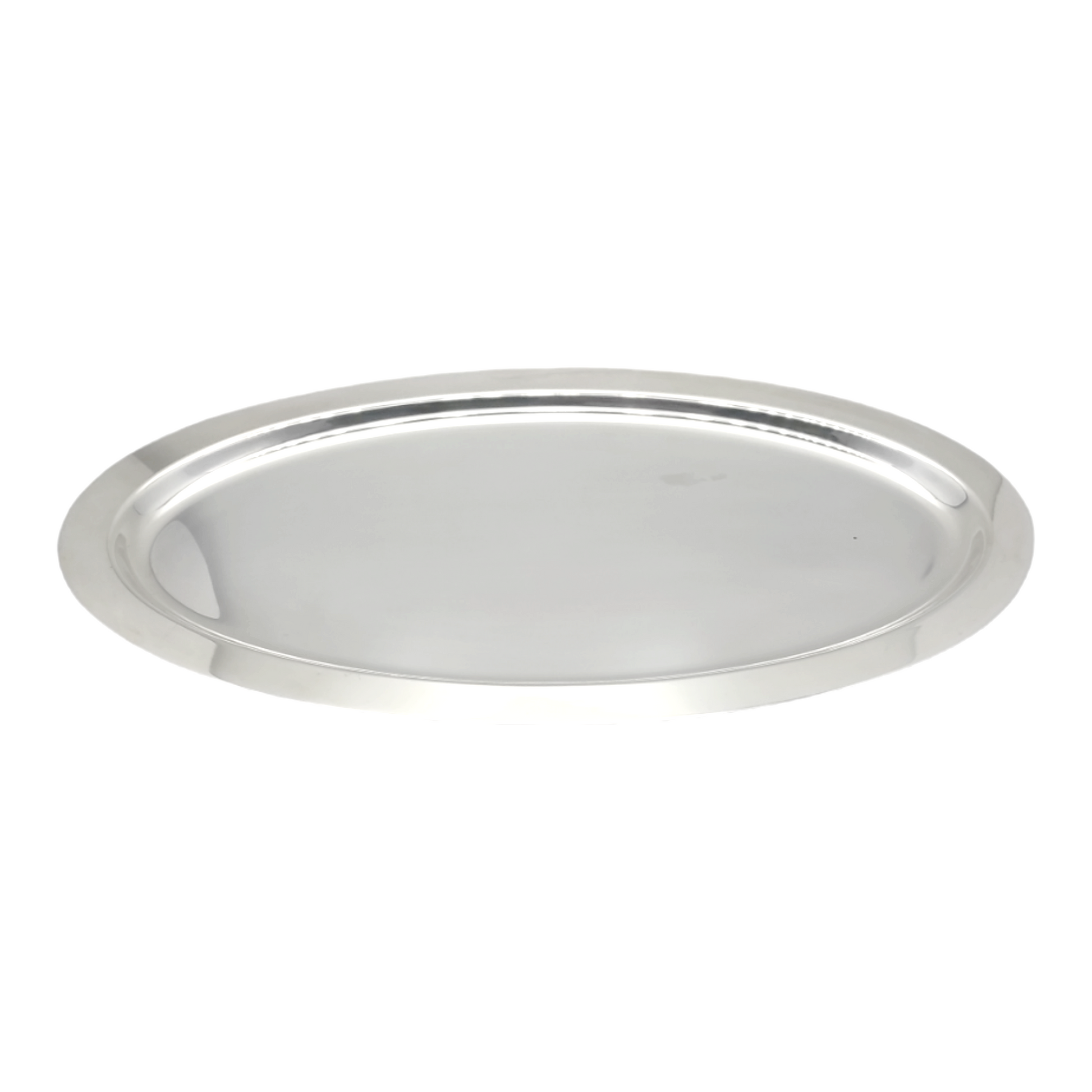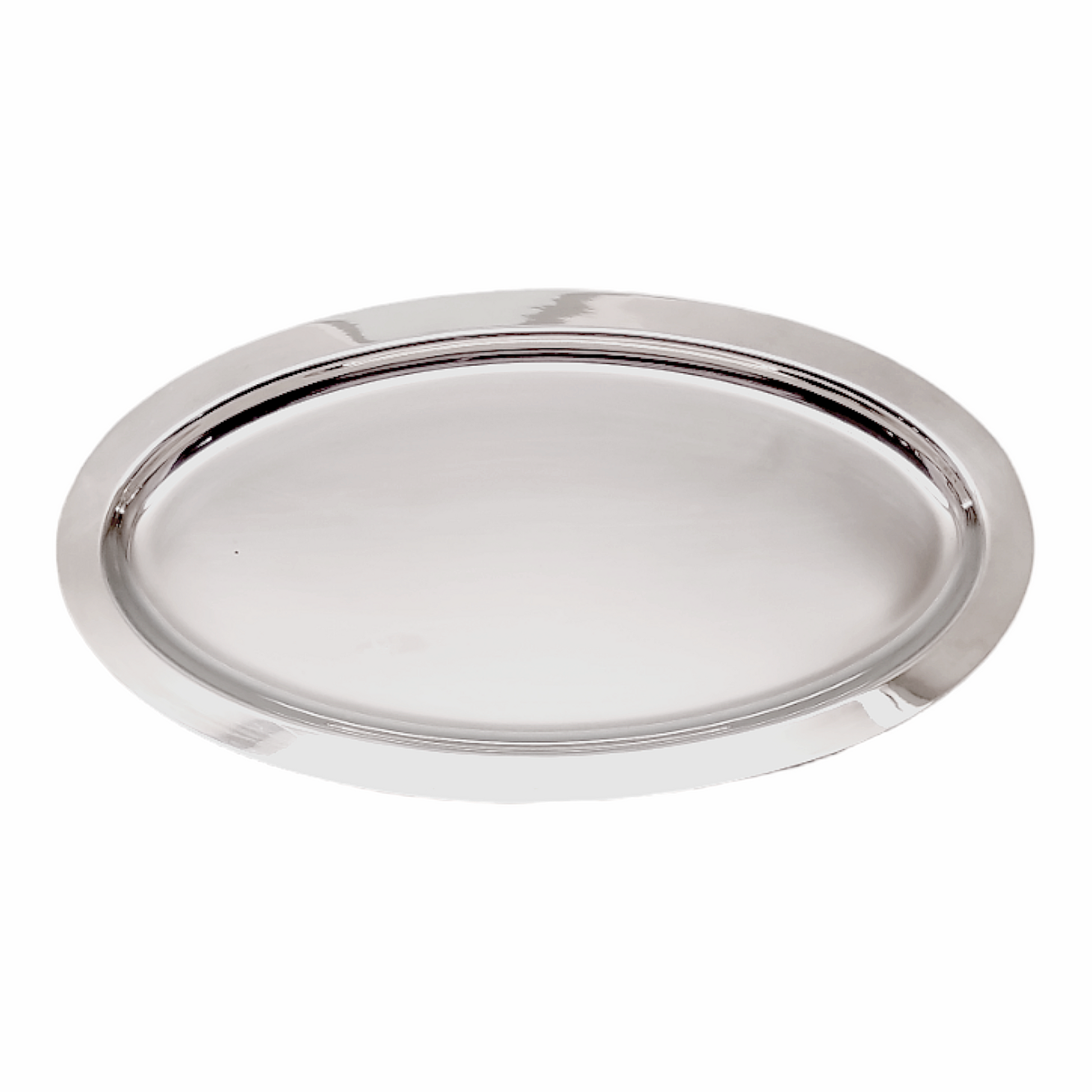 Vassoio lavorato a mano in stile Inglese realizzato in argento 800. L'articolo ha forma ovale di dimensione 26 cm x 14,5 cm per un peso totale di 171 gr.