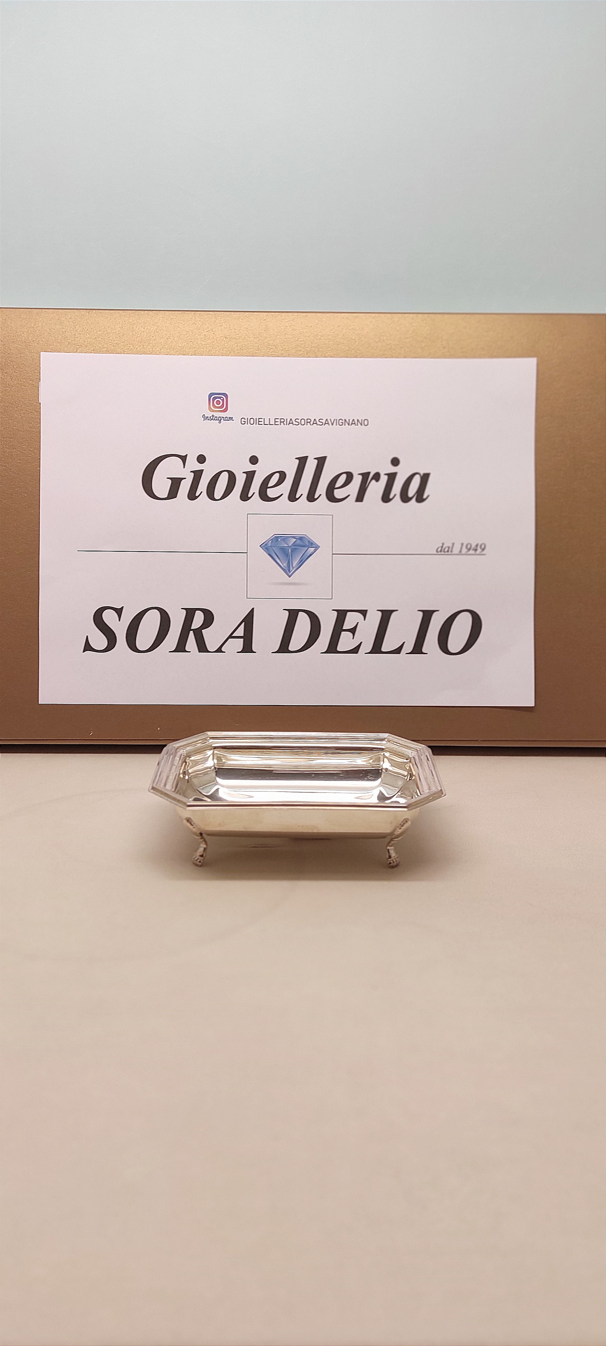 Zuccheriera rialzata rettangolare della Greggio realizzata in argento 800 in stile Inglese. Dimensioni : 13,8 cm x 9,5 cm, altezza 4 cm peso totale 154 gr.
