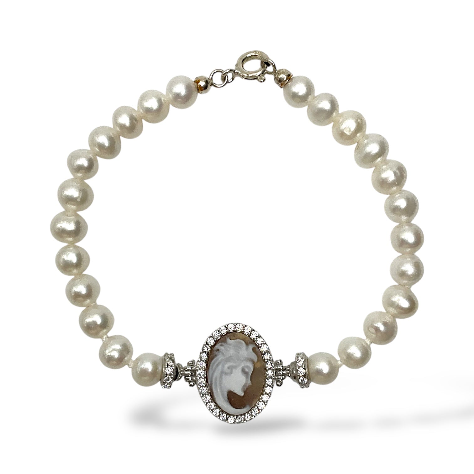 Bracciale con Perle e Cammeo in Argento - Cammeo14