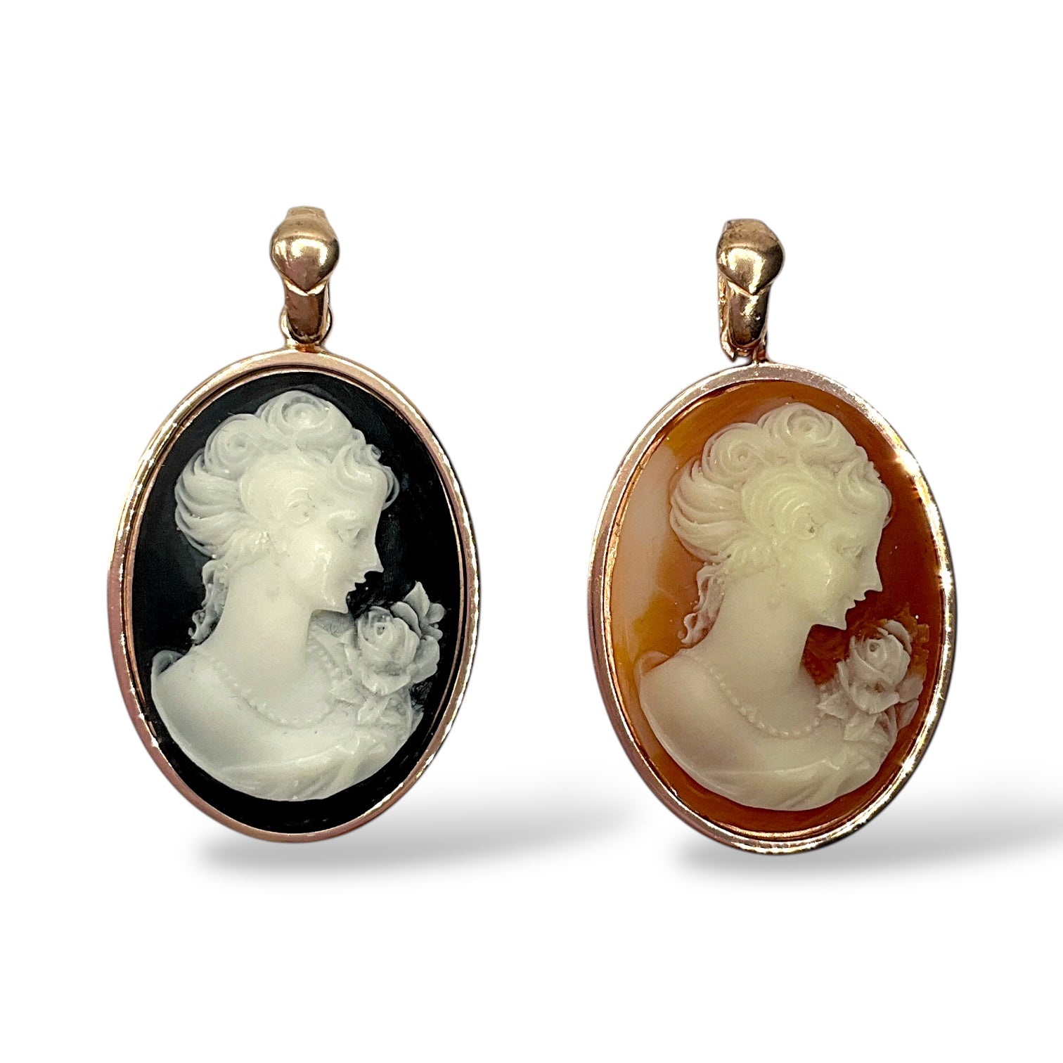Ciondolo Cammeo con montatura in argento rosato - Cammeo12 / Cammeo 13