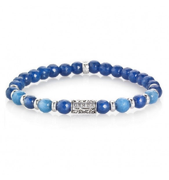 Bracciale elasticizzato da uomo della collezione Stone di Gerba realizzato a mano con sfere di Agata blu e azzurro da 6 mm di diametro e componenti in Argento 925