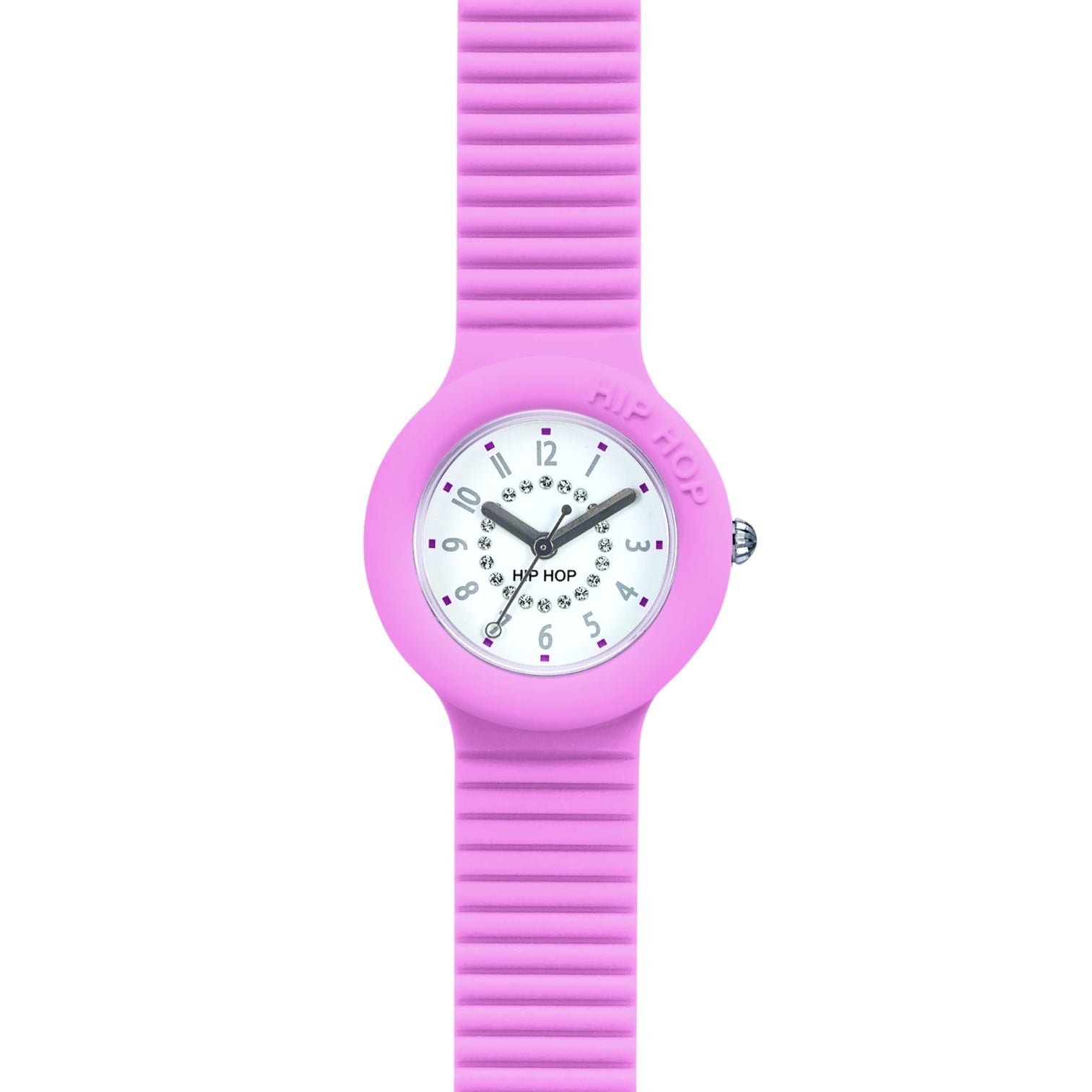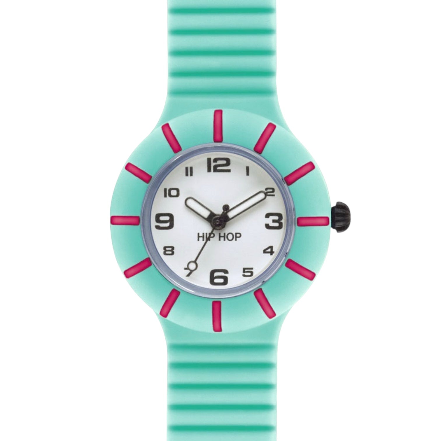 Orologio da bambina o donna di Hip Hop della collezione Number disponibile in vari colori. Cassa in plastica del diametro di 32 mm, quadrante bianco con numeri abbinati al colore del cinturino. Cinturino in silicone colorato facilmente accorciabile tagliandolo nelle linee guida. Chiusura in plastica con pulsanti laterali. Movimento solo tempo al quarzo, resistenza all'acqua 5 atm.