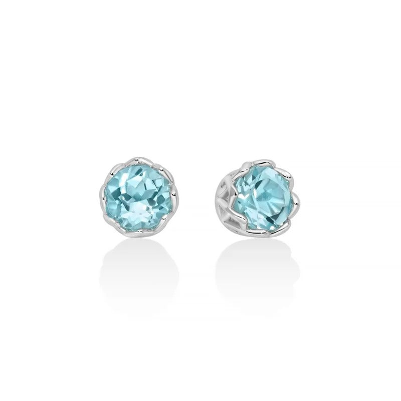 Orecchini a lobo in argento da donna di Miluna della collezione Unica Colibrì. Orecchini in argento con topazio azzurro o argento dorato con citrino giallo.