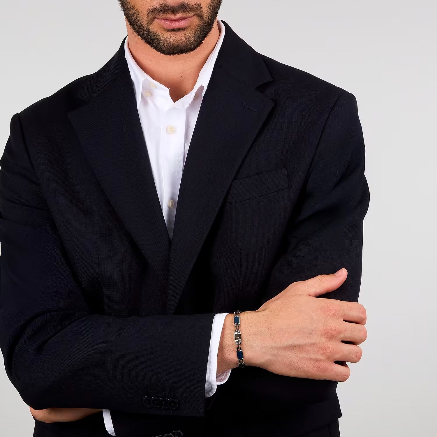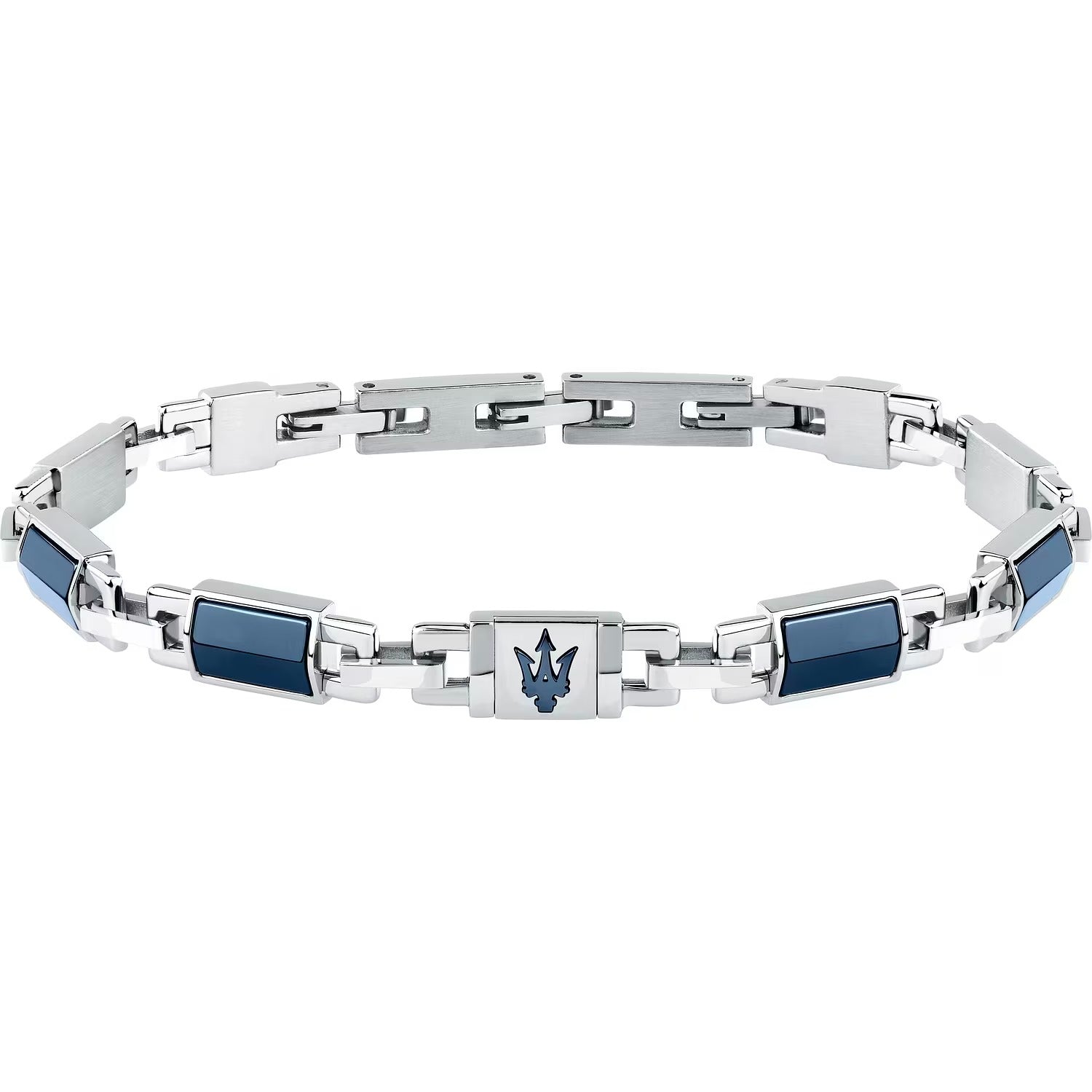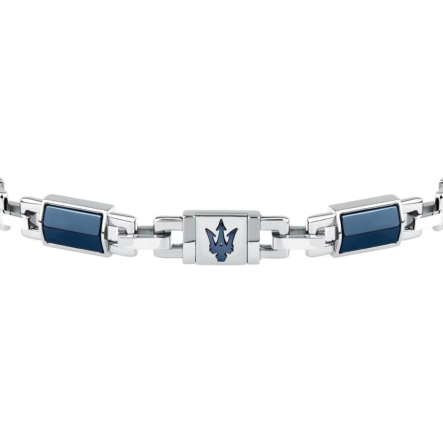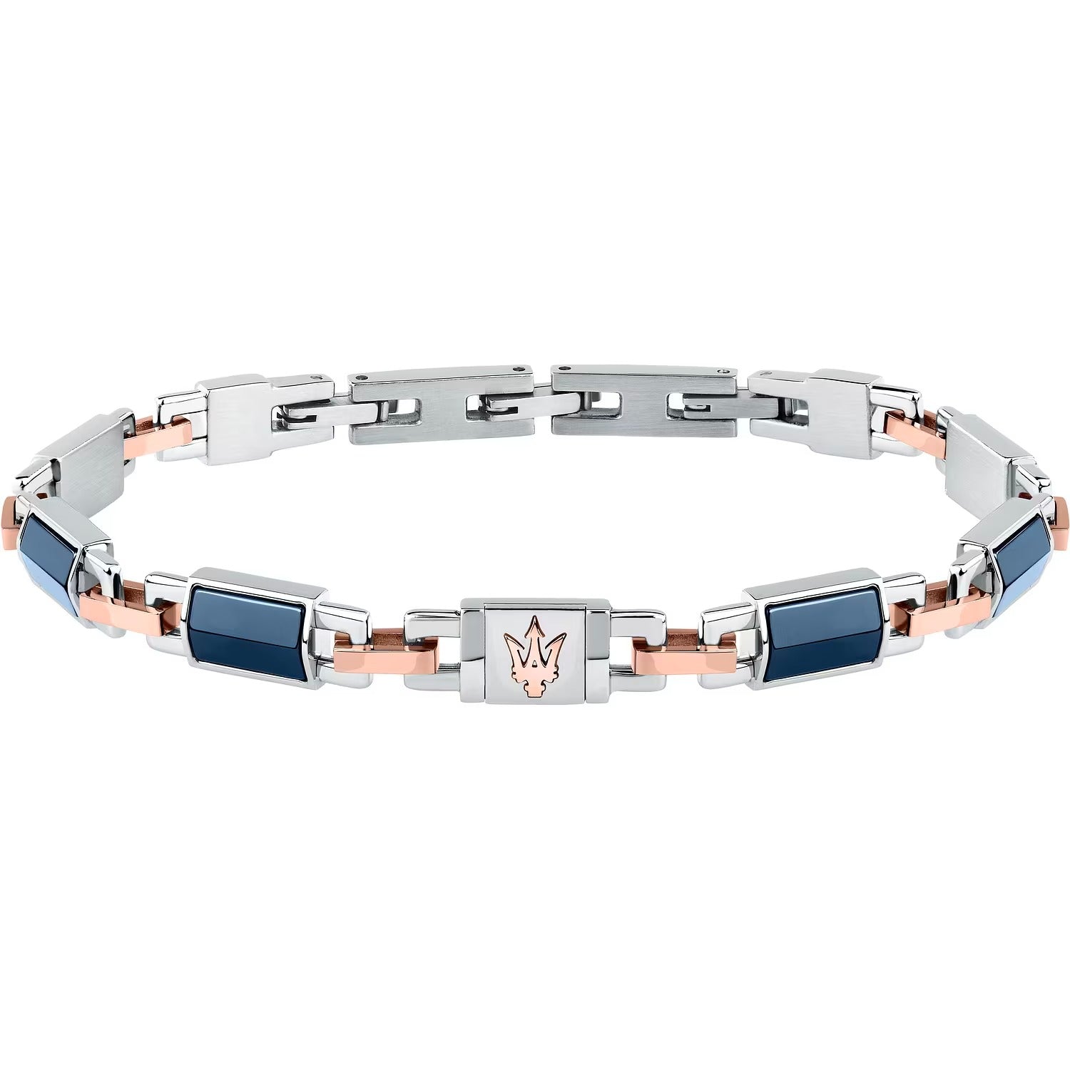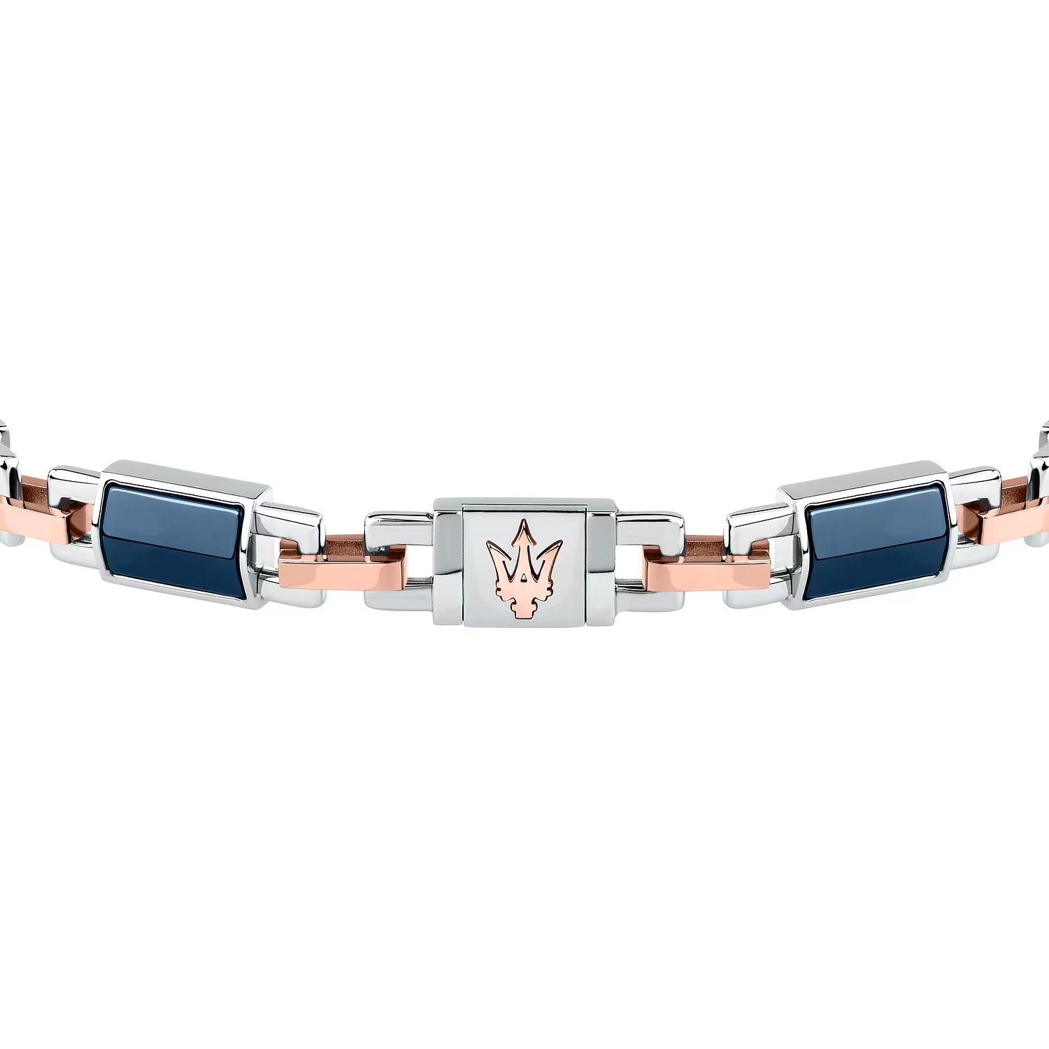 Bracciale da uomo di Maserati Jewels della collezione Ceramic. Bracciale realizzato in acciaio e maglie con parti in ceramica nera, blu o verde e parti in acciaio nero o rosato.