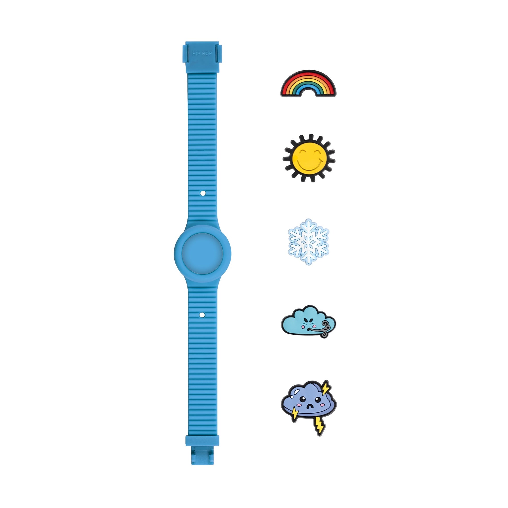 Se possiedi già un orologio Hip Hop, rendilo unico con questo cinturino in silicone della collezione Pintastic, pensato appositamente per facilitare l'apprendimento della lettura dell'ora. Imparare a leggere l'ora diventa un'esperienza interattiva e stimolante: PinTastic! è il primo orologio Pin&Play di Hip Hop che coniuga educazione, creatività e svago. Progettato per accompagnare i bambini nei primi passi verso la comprensione del tempo, questo cinturino azzurro, realizzato in silicone ipoallergenico e facile da pulire, include 5 pin a tema meteo da inserire negli appositi fori e personalizzare quotidianamente il proprio stile.