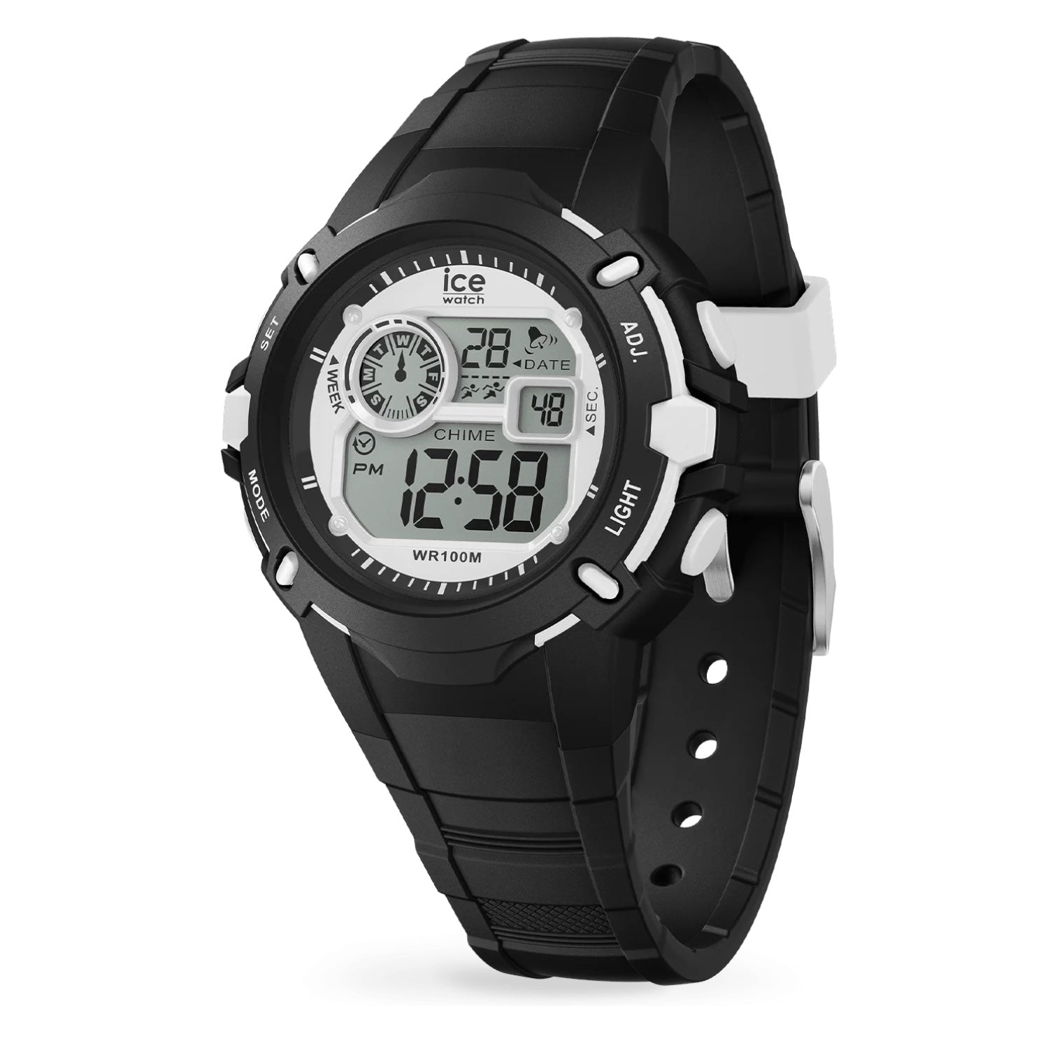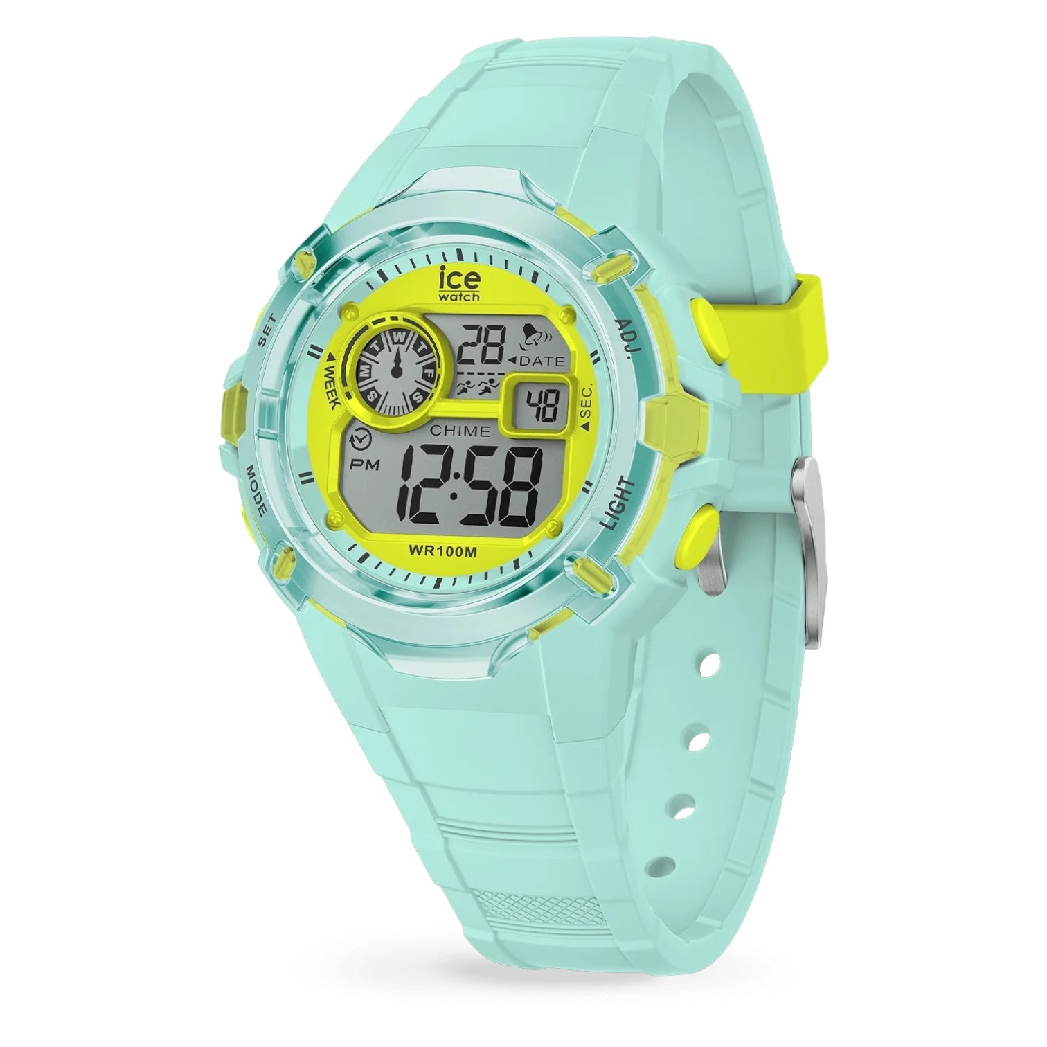 Orologio da bambini digitale di Ice Watch multifunzione della collezione Digit Explorer. Cassa in plastica leggera con fondello in acciaio, dimensione cassa 40 mm, display multifunzione digitale, cinturino in silicone integrato nella cassa. Resistenza all'acqua 10 atm.
