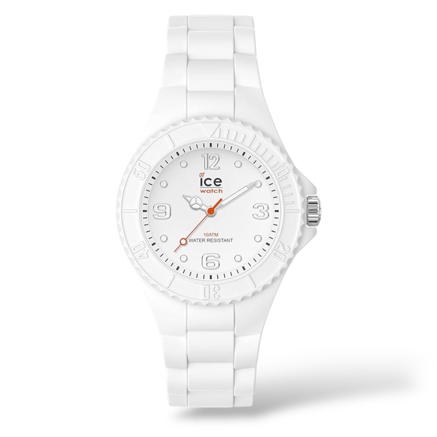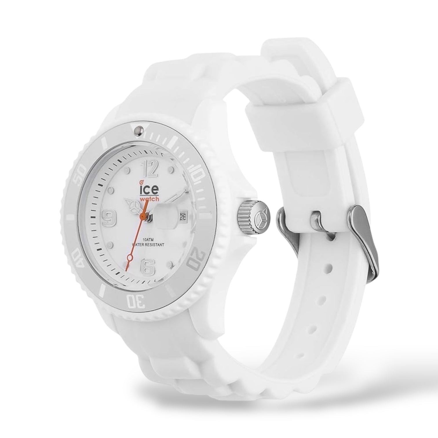 Orologio solo tempo da donna o bambini di Ice Watch della collezione Ice Forever, cassa in plastica con fondello in acciaio, dimensione cassa 30 mm, quadrante bianco, numeri indici e sfere bianche con contorno silver. Cinturino in silicone, chiusura fibbia. Resistenza all'acqua di 10 Atm.