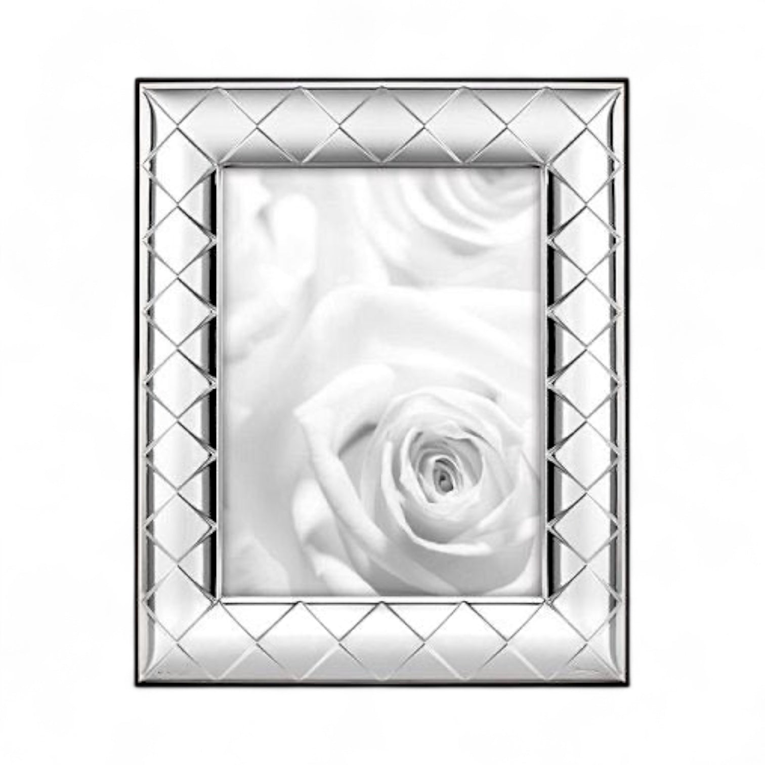 Cornice portafoto in argento di Ottaviani della collezione Cachemire. Cornice realizzata con lastra argento e retro in legno scuro.