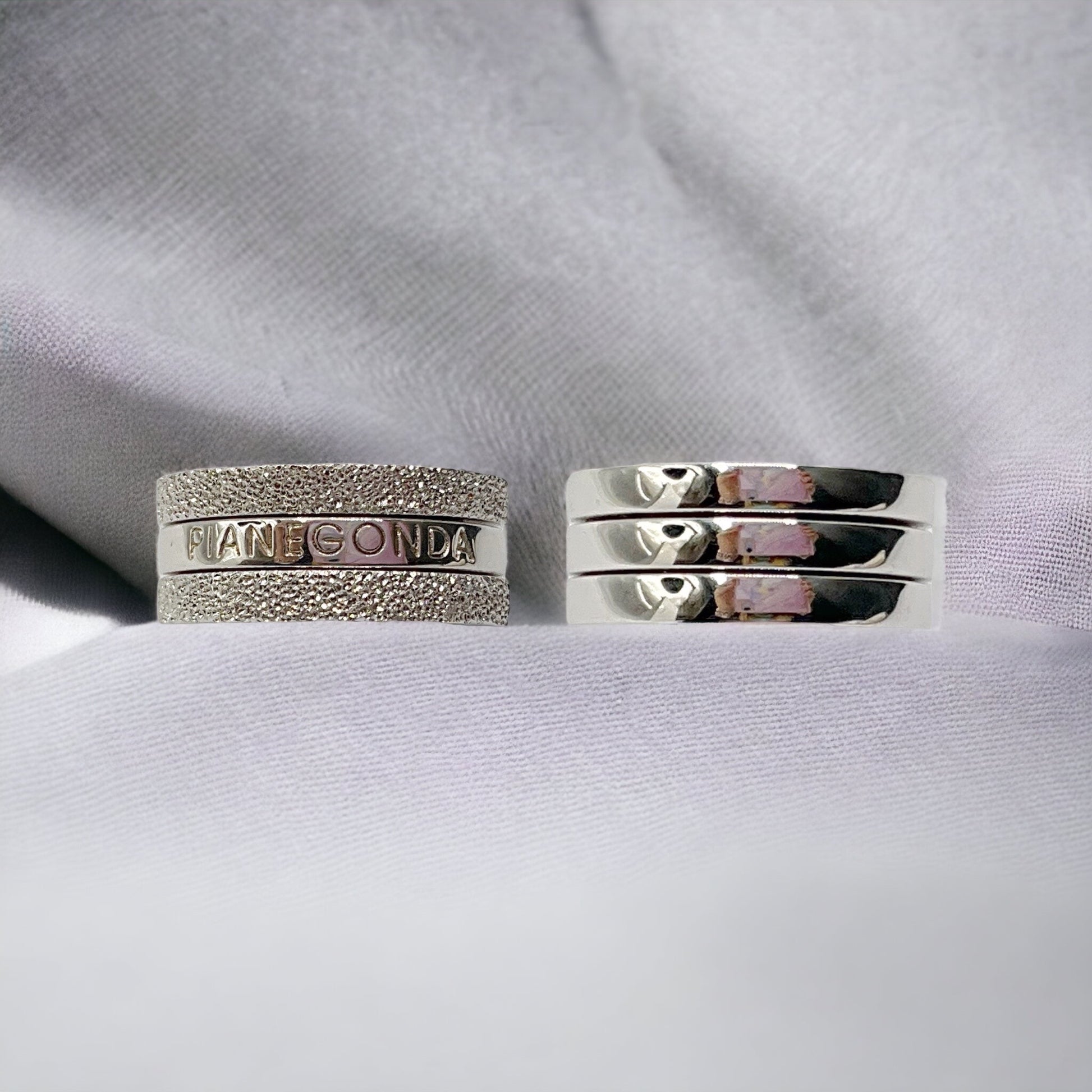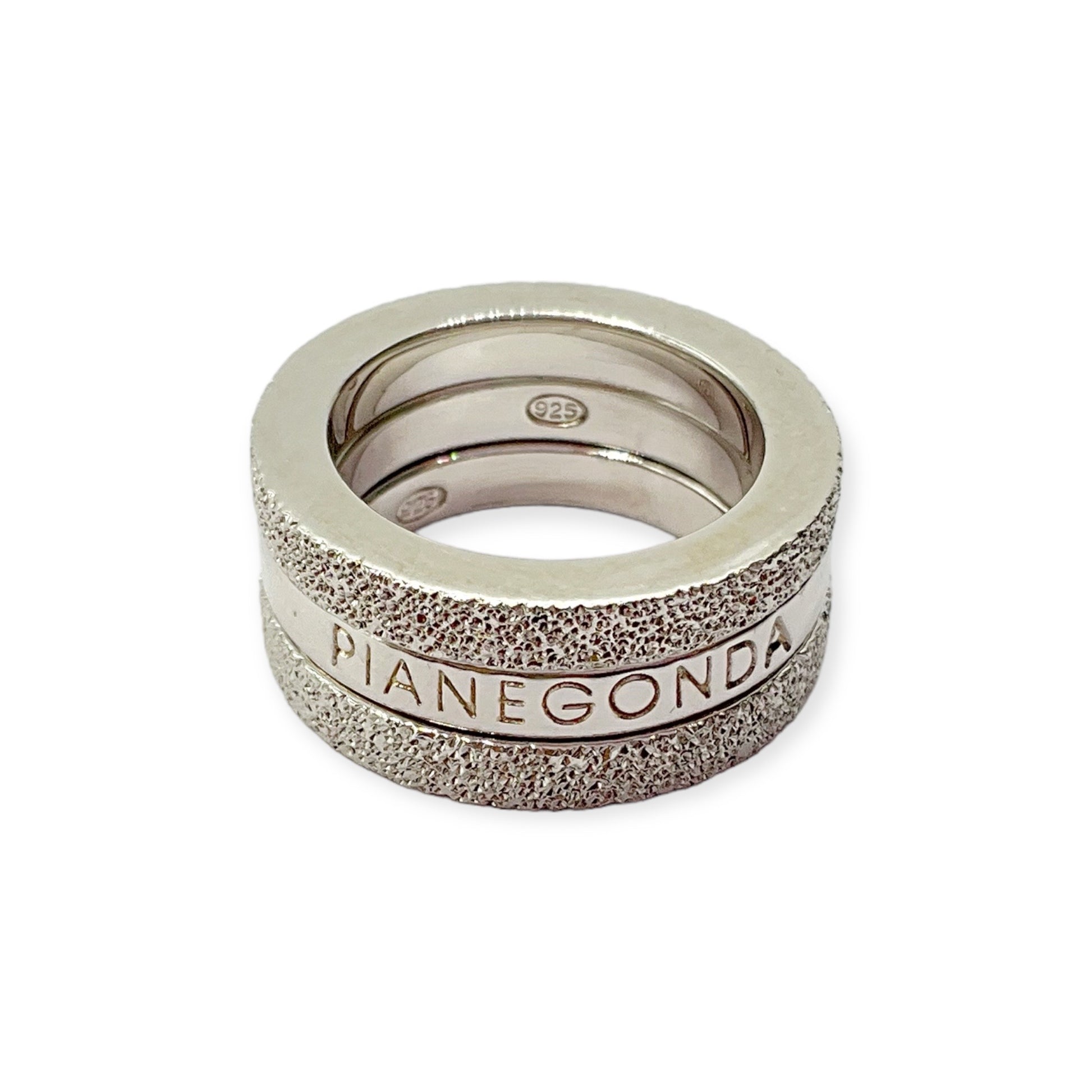 Anello da donna in argento della collezione Bond e Love Bond. Anello composto da 3 fedine in argento non unite fra loro quindi possono essere portate tutte insieme o divise, sono lucide o alternate lucide e sabbiate.