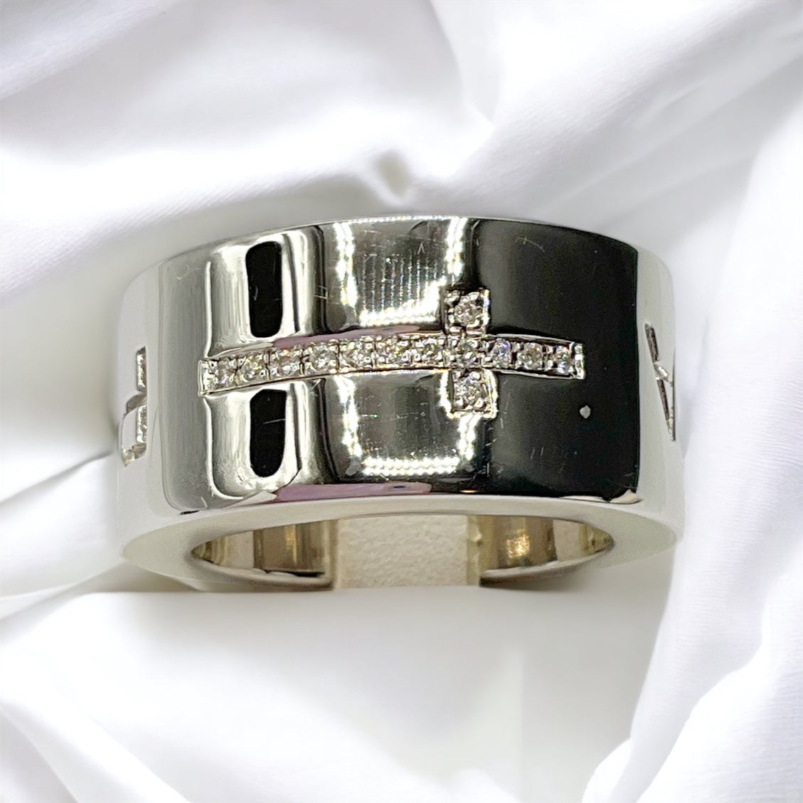 Anello a Fascia Donna Croce con Brillanti in Argento - AA010570