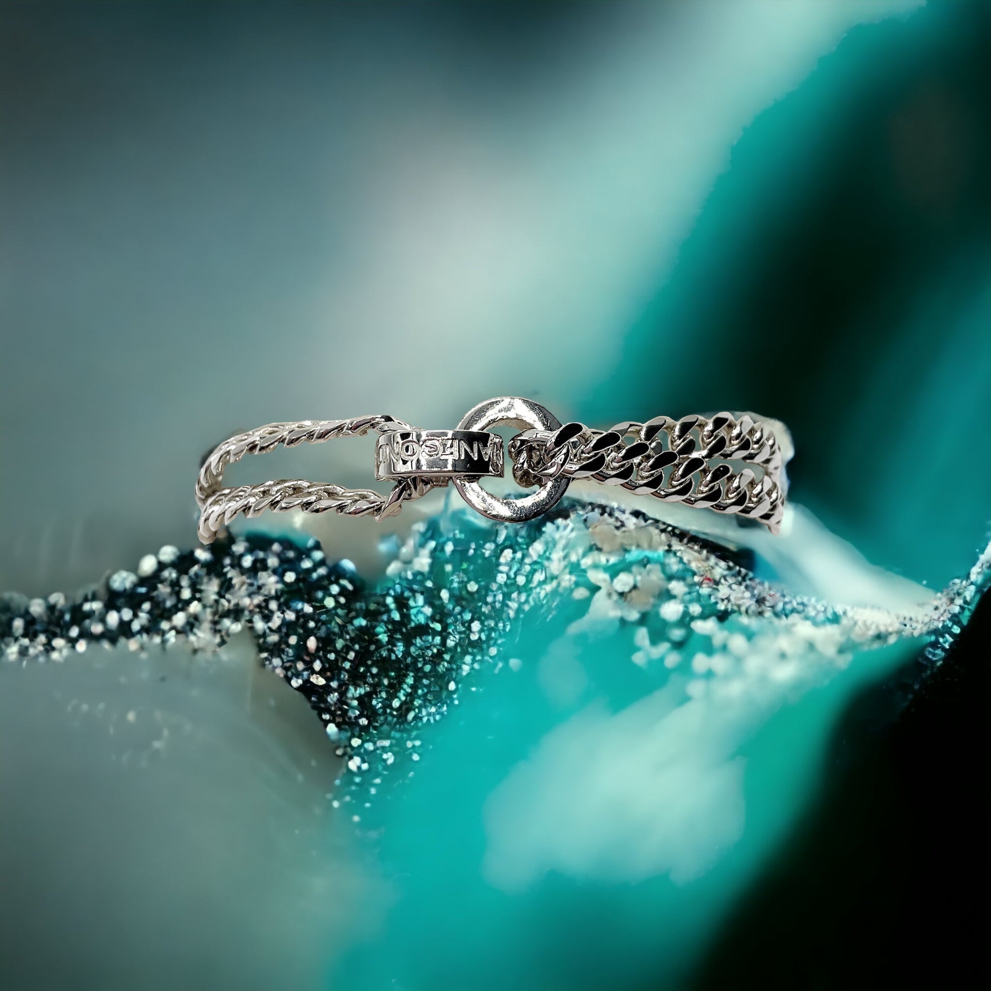 Bracciale unisex in argento della collezione Dark Side. Bracciale formato da doppia catena Groumette unita al centro da due anelli.