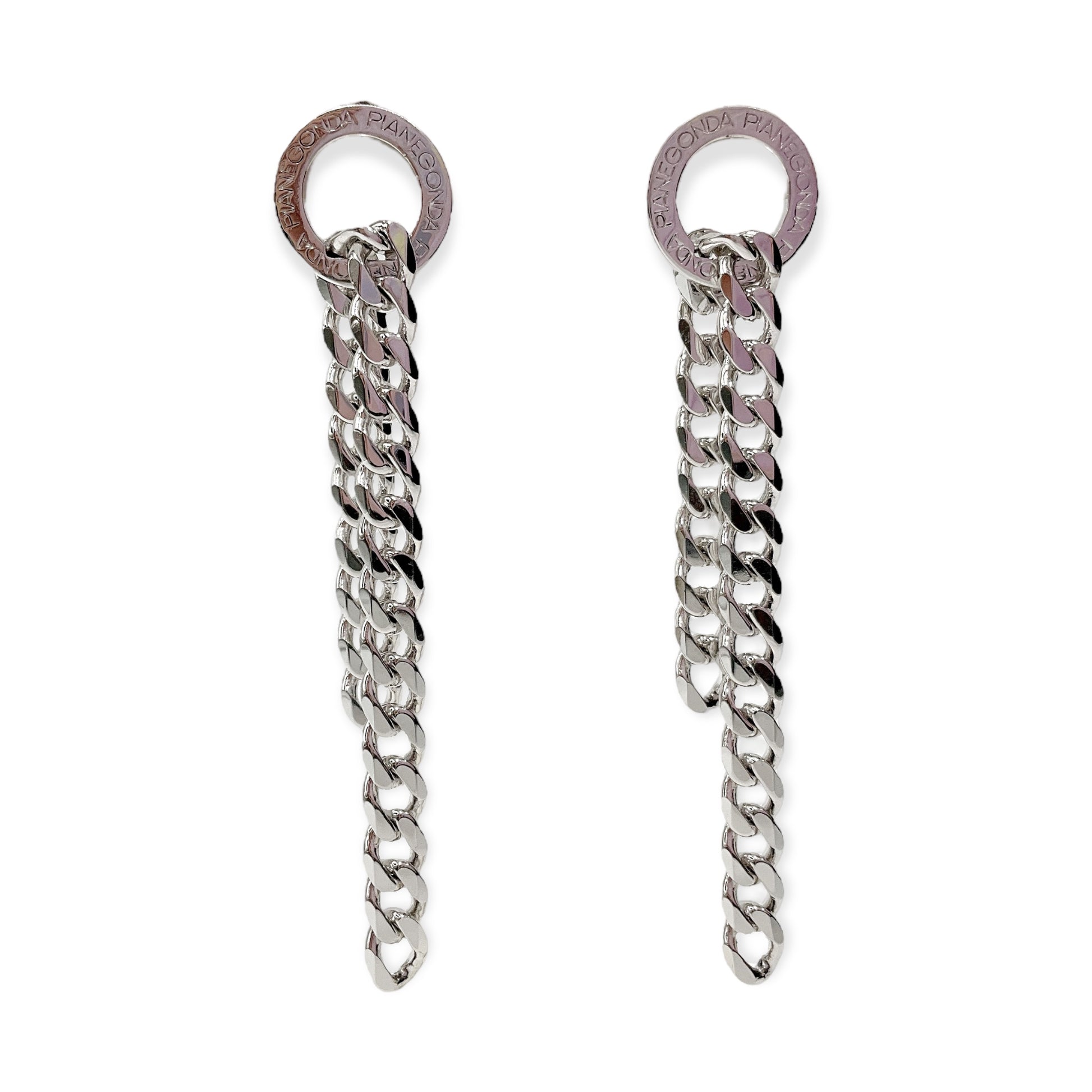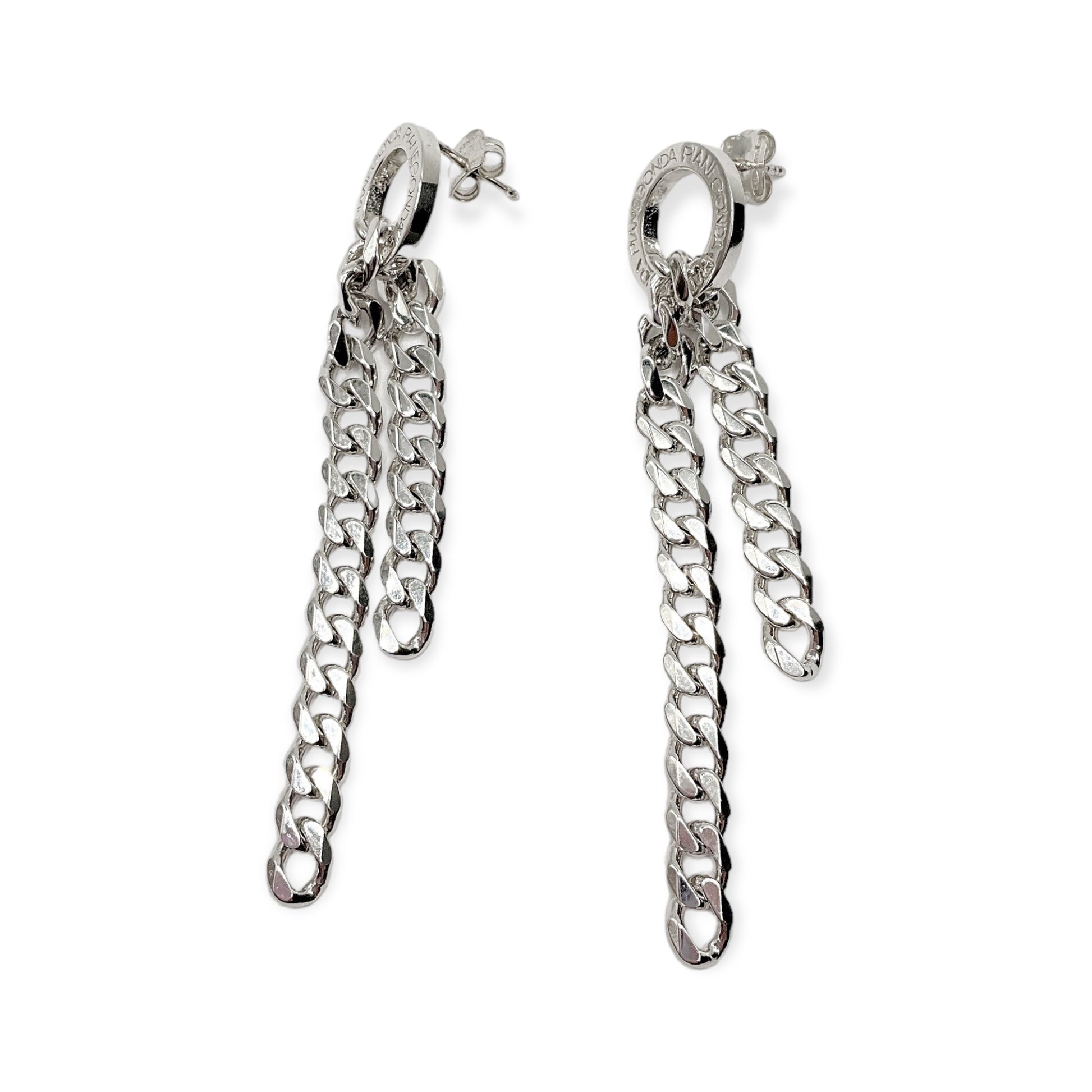 Orecchini pendenti da donna in argento, tondo al lobo e catena groumette doppia pendente.
