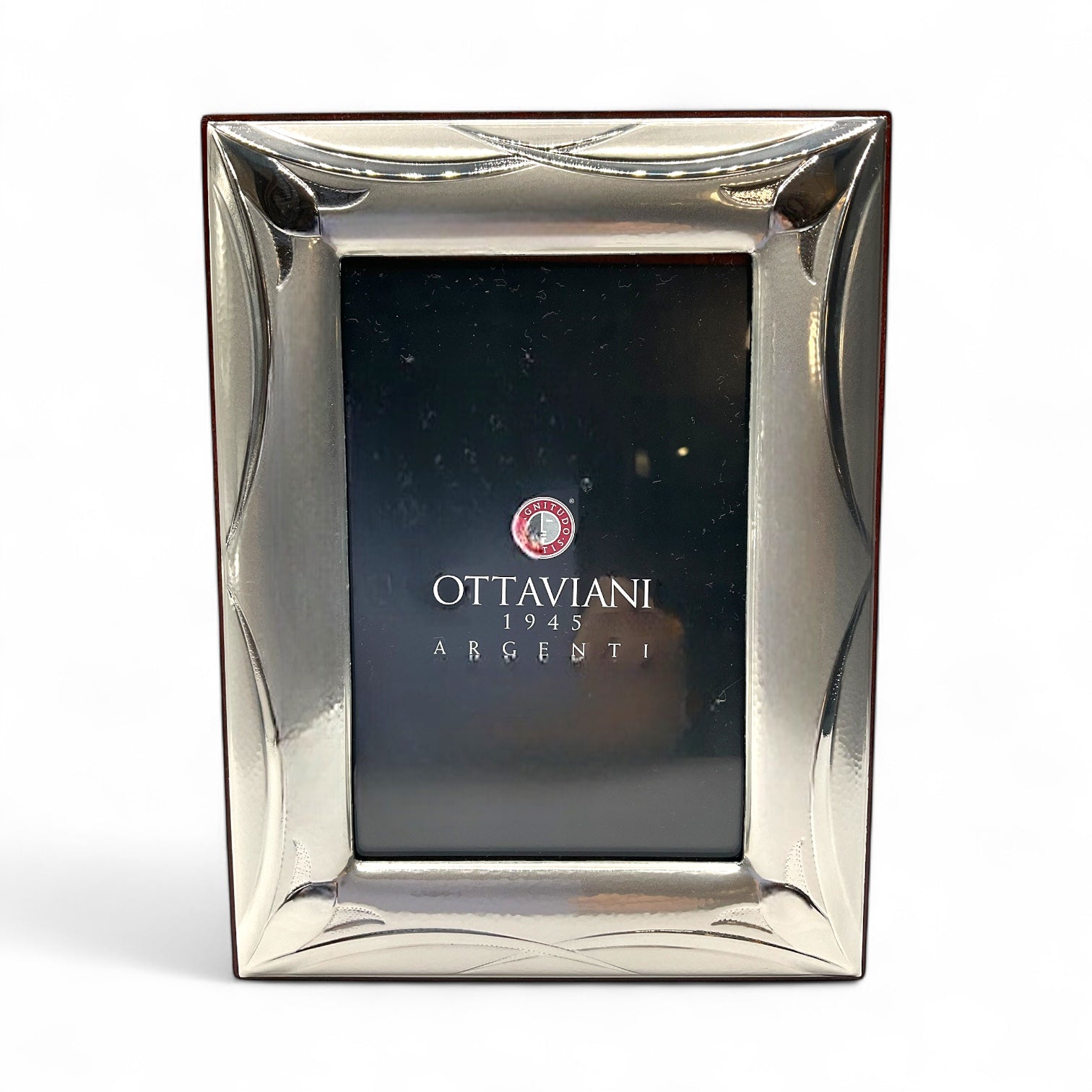 Cornice portafoto in argento di Ottaviani della collezione Fresie. Cornice realizzata con lastra argento decorata, retro in legno.