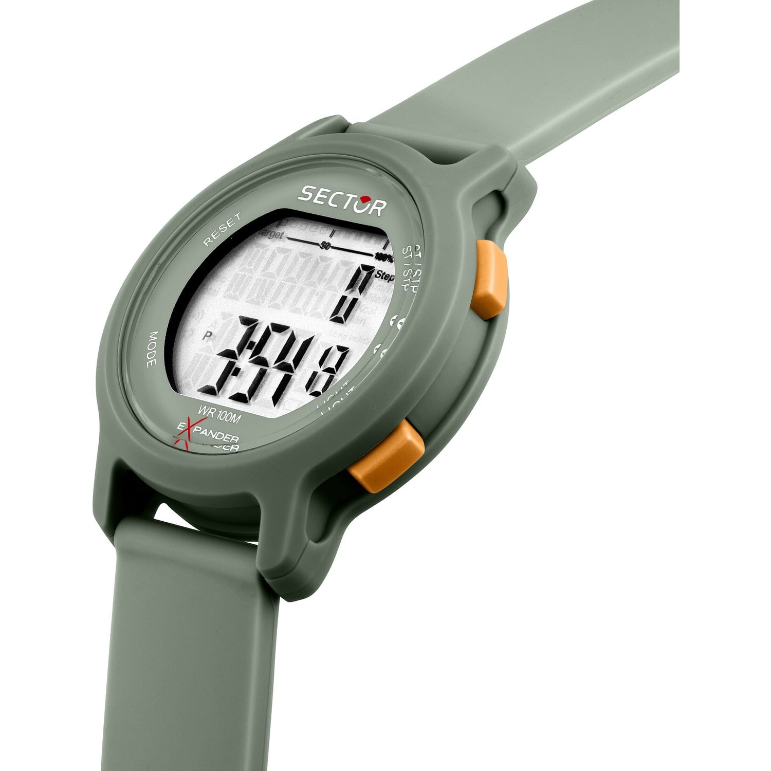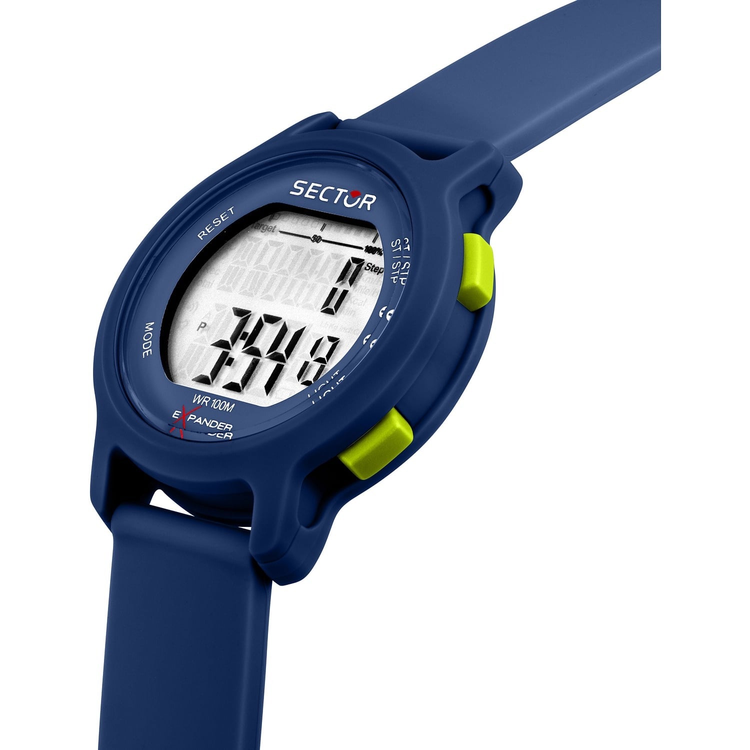 Orologio digitale unisex di Sector Expander della collezione EX-27. Cassa in materiale sintetico del diametro di 43 mm con display digitale. Cinturino in poliuretano. Movimento multifunzione digitale al quarzo. Resistenza all'acqua 5 atm.