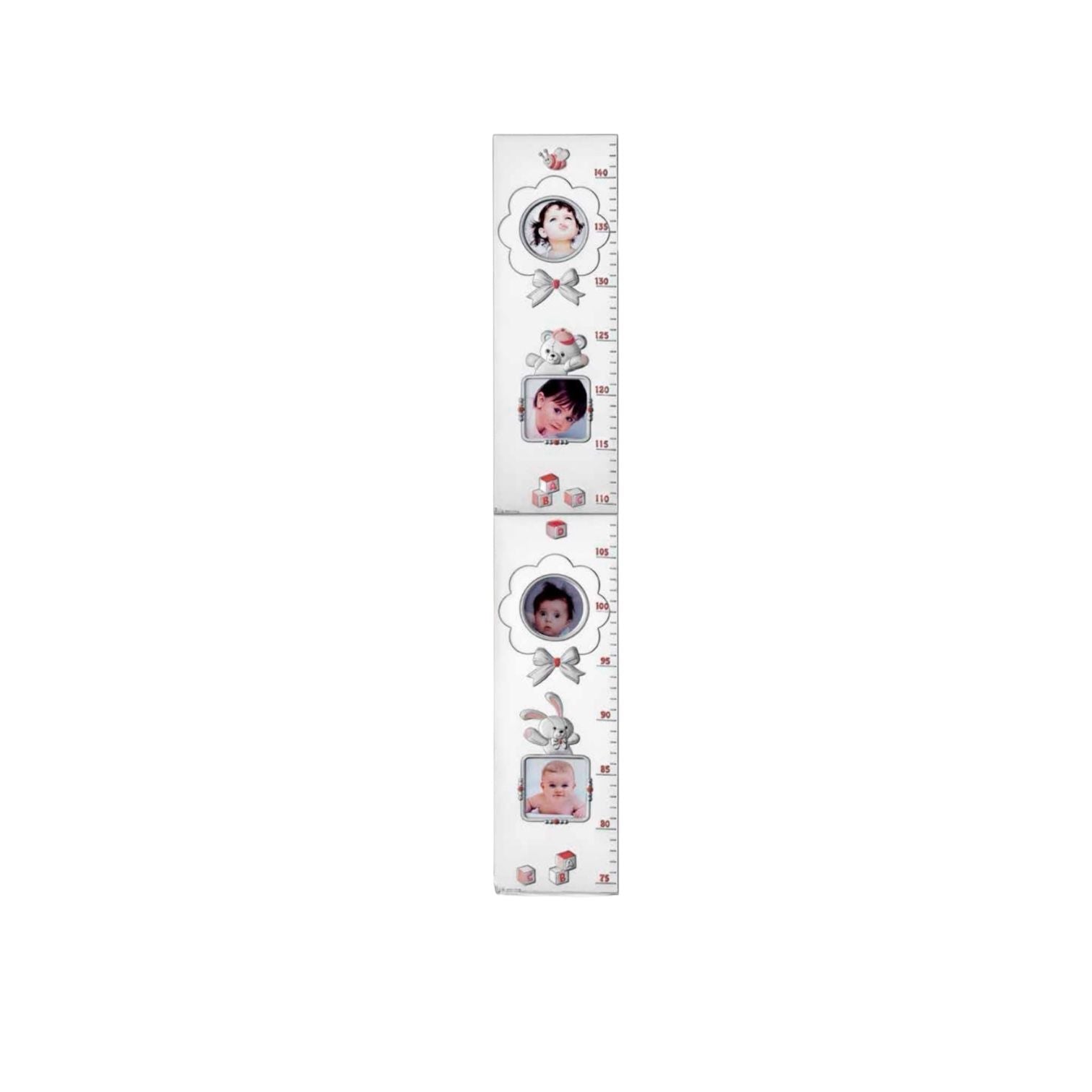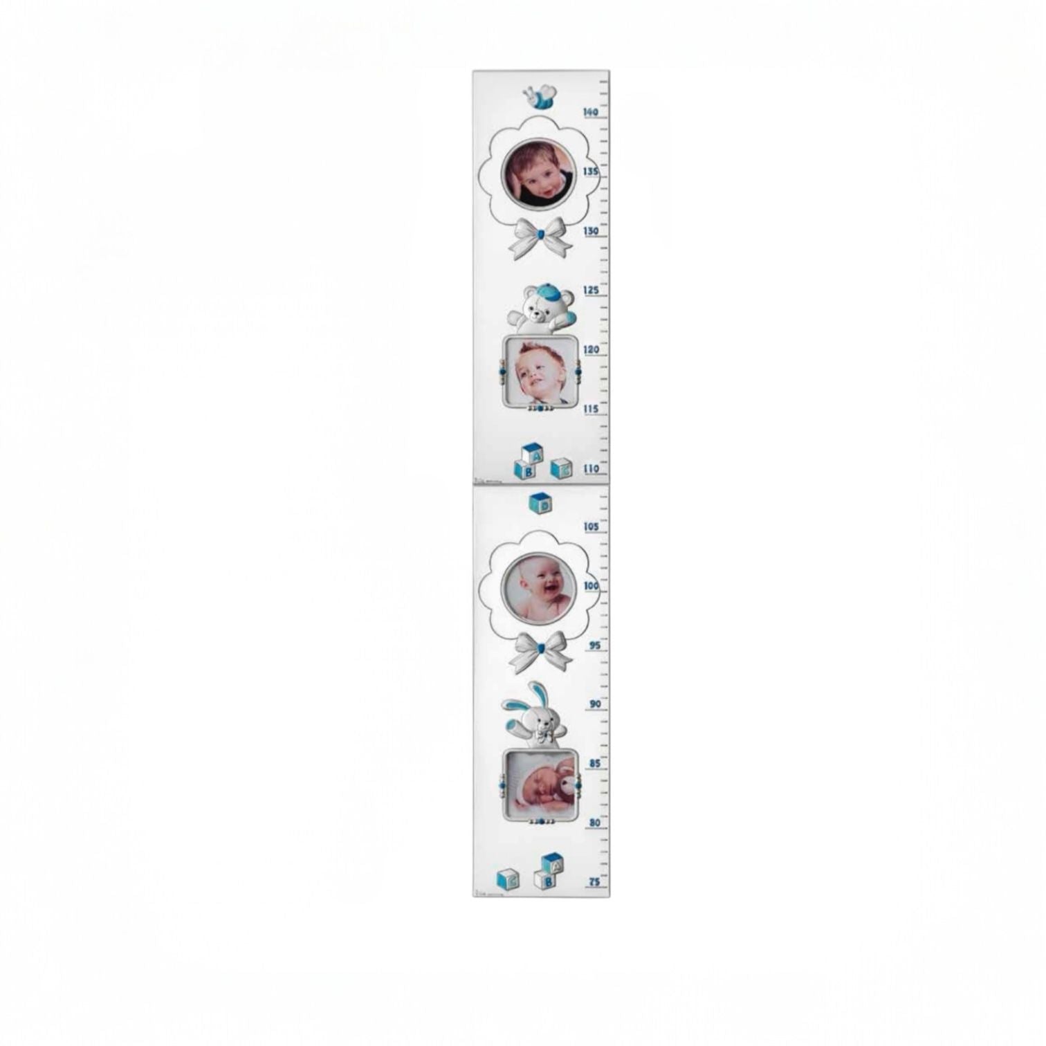 Metro portafoto per bambini realizzato in legno bianco e ricoperto da argento laminato. L'articolo contiene 4 cornici portafoto ed è impreziosito da simpatici disegni lavorati in rilievo. Misure articolo 11 x 70 cm