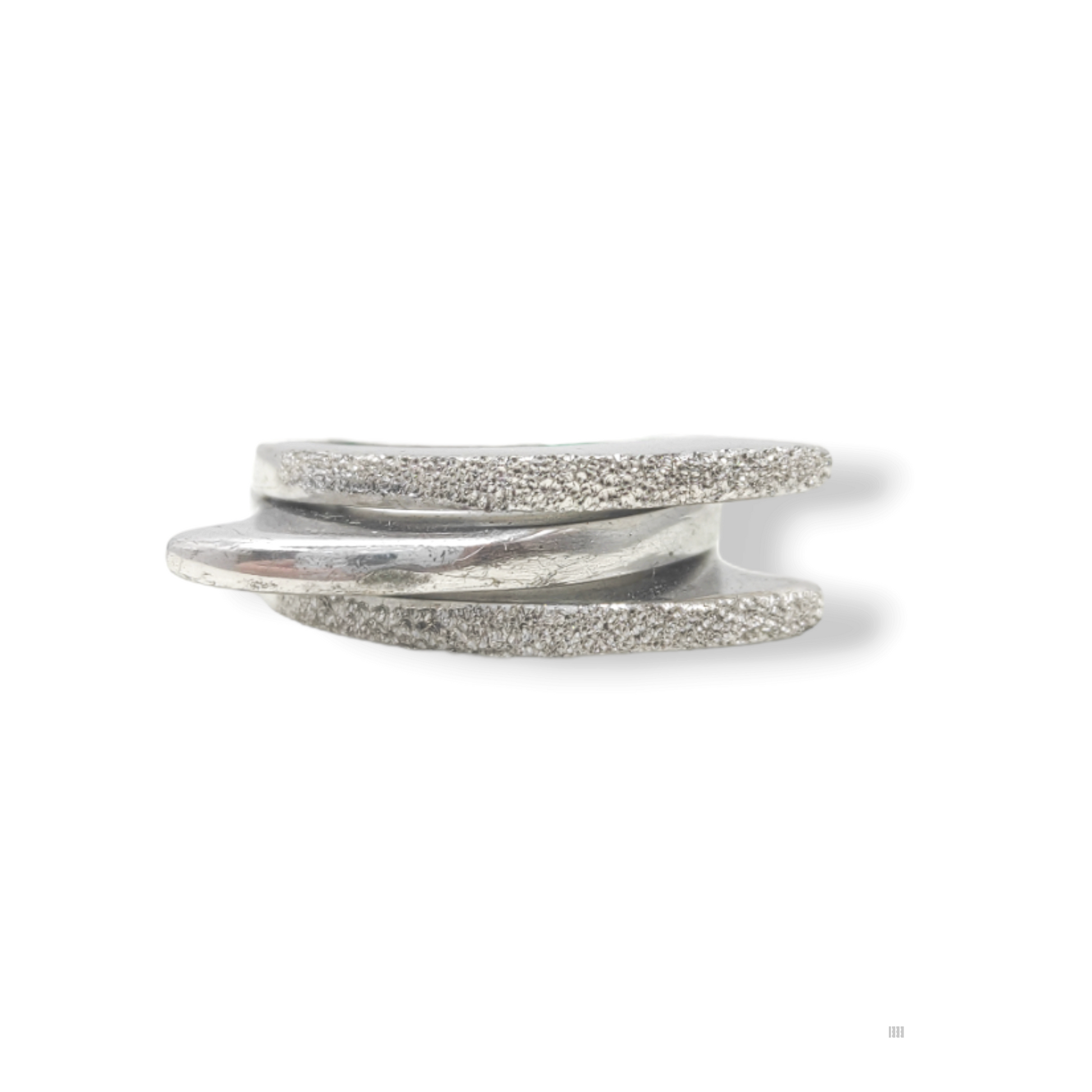 Anello da donna realizzato in argento massiccio a tre fasce sovrapposte con superficie diamantata alternata a finitura lucida