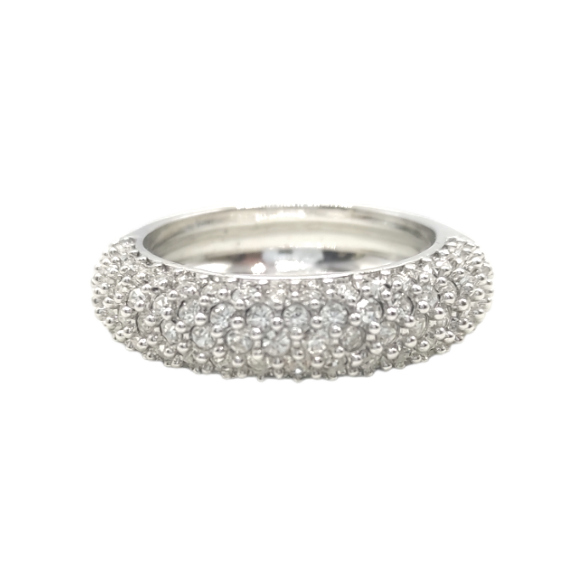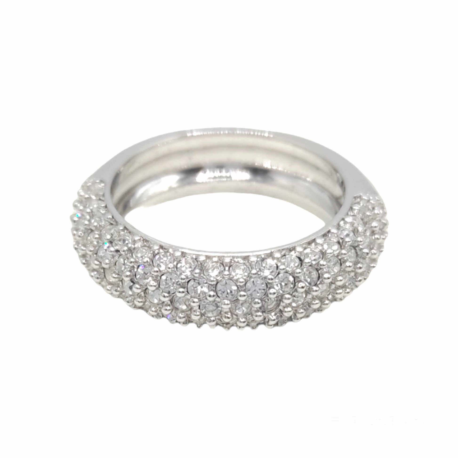 Anello della collezione Basic dalla forma bombata realizzato in ottone placcato silver con zirconi incastonati.
