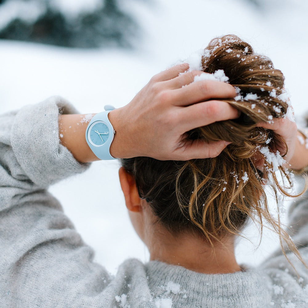 Orologio Ice Watch, Orologio Solo Tempo Con Tre Lancette. L'Orologio Ice Watch Ha La Cassa In Silicone Azzurro Pastello Con Fondello In Acciaio, Resistenza All'Acqua Di 10Atm, Il Cinturino Integrato Di Colore Azzurro Pastello e Parte Interna Bianca, Il Colore Della Cassa È Azzurro Pastello Con Quadrante Azzurro Pastello e Sfere Bianche. La Dimensione Di Questo Modello È Small (34 mm), La Chiusura Dell'Orologio È A Fibbia Acciaio. Questo Orologio Ice Ha La Ghiera Interna Bianca.